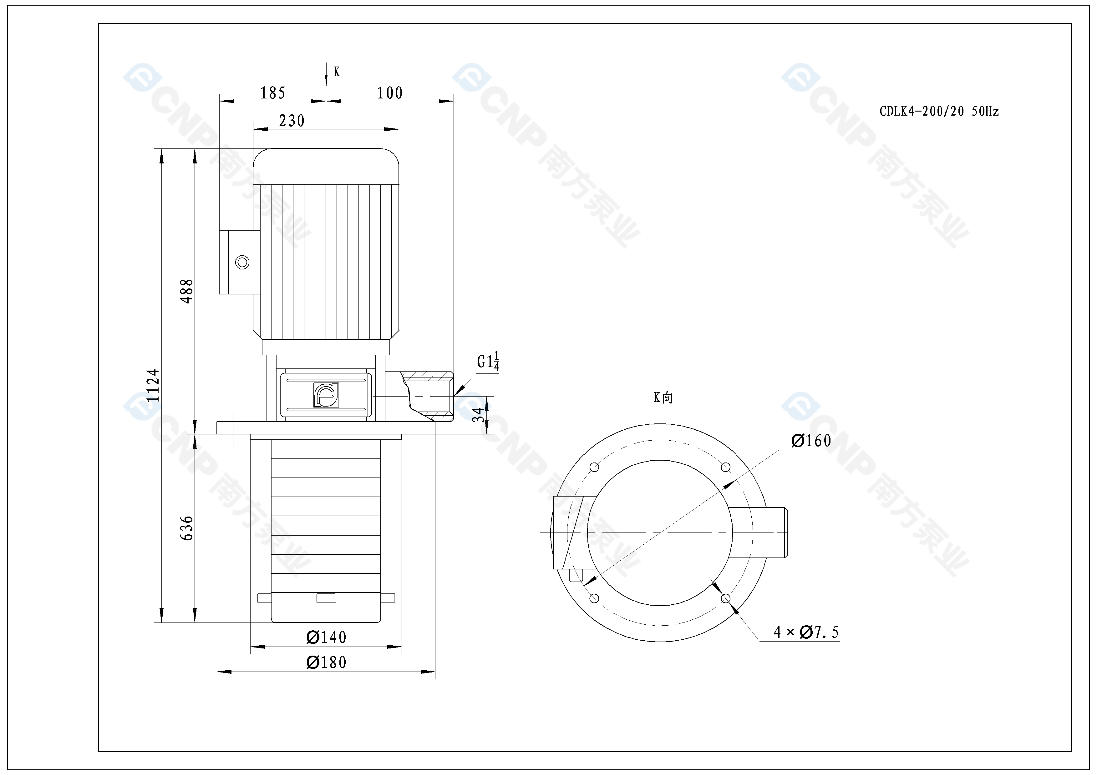 需要南方泵CDLK4-200/20外形CAD文件 請加銷售人員微信索取