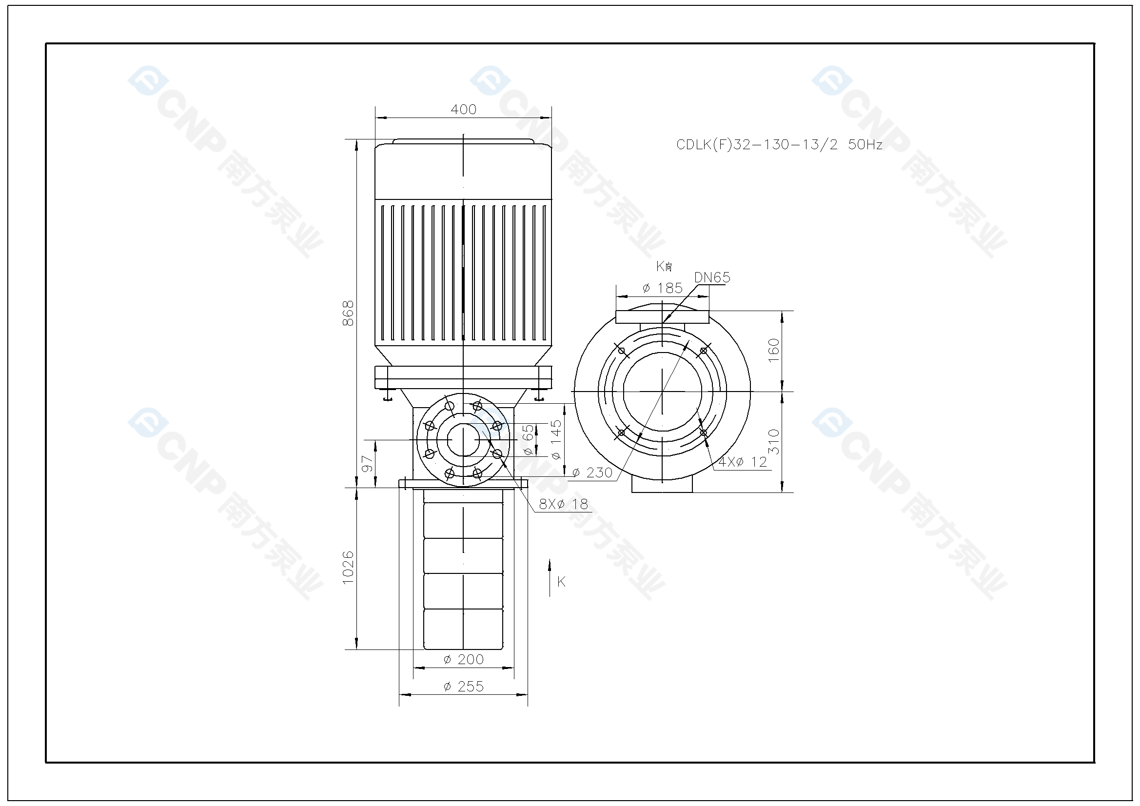 需要南方泵CDLK32-130/13-2外形CAD文件 請加銷售人員微信索取