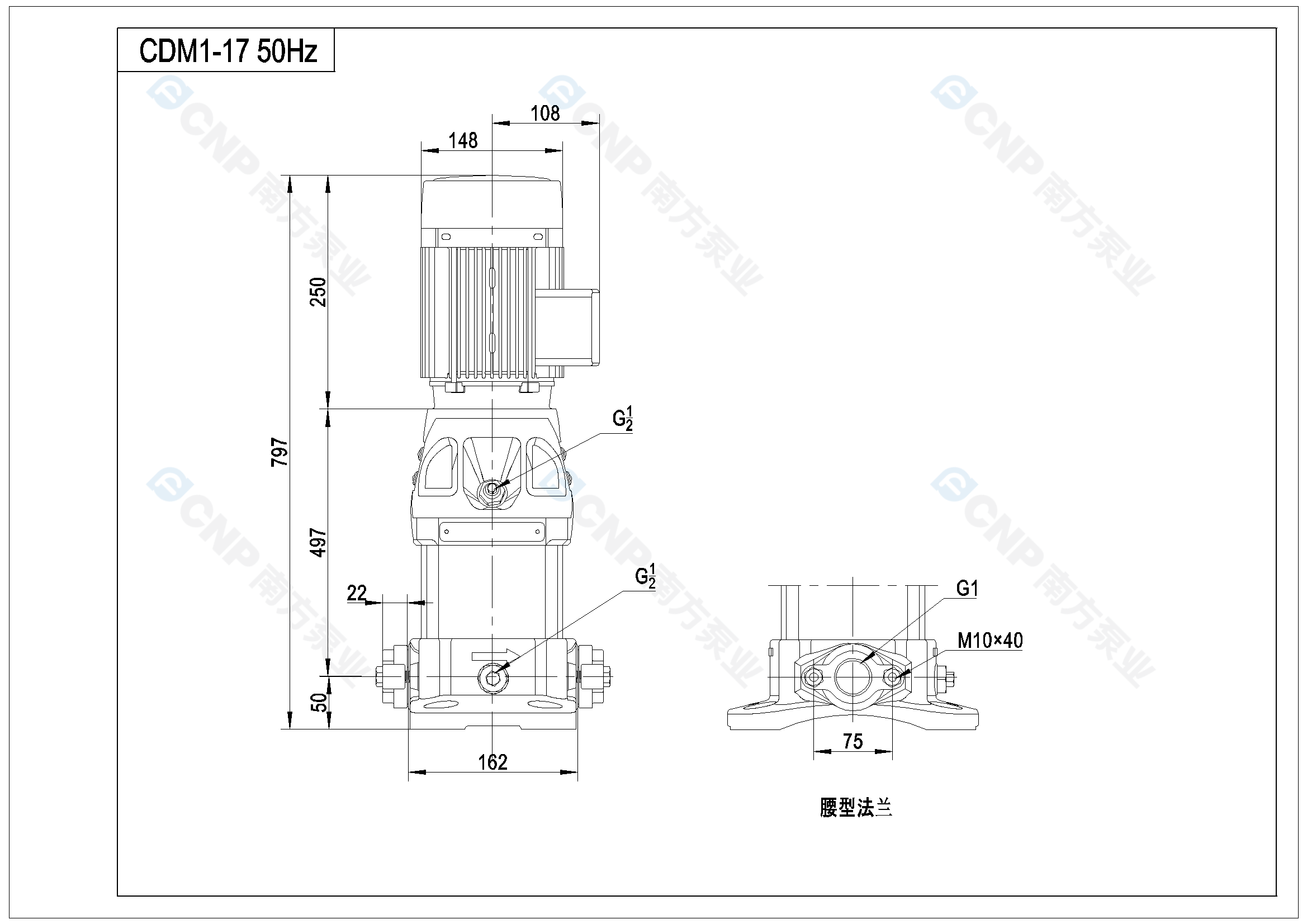 需要南方泵CDM1-17外形CAD文件 請加銷售人員微信索取
