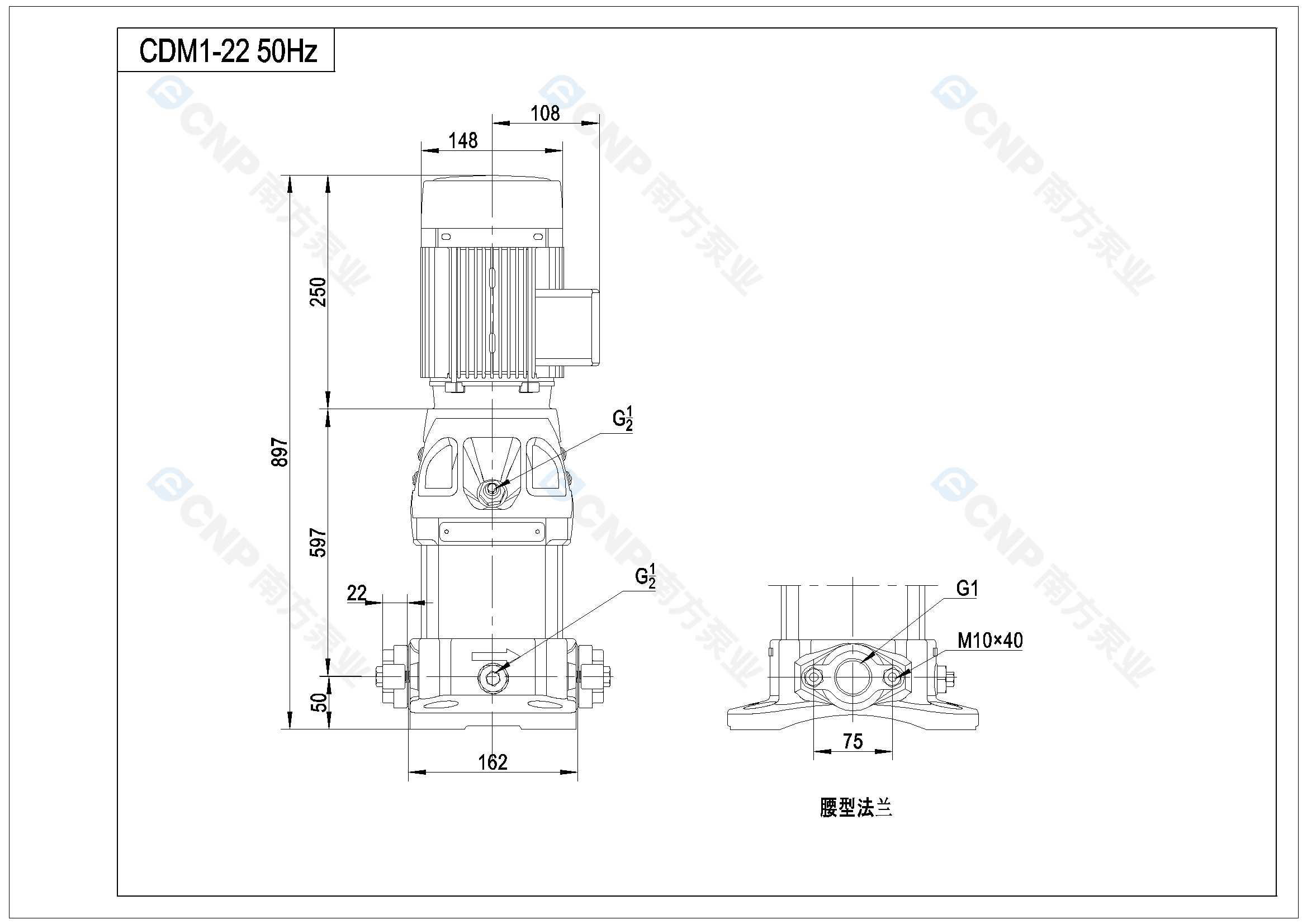 需要南方泵CDM1-22外形CAD文件 請加銷售人員微信索取