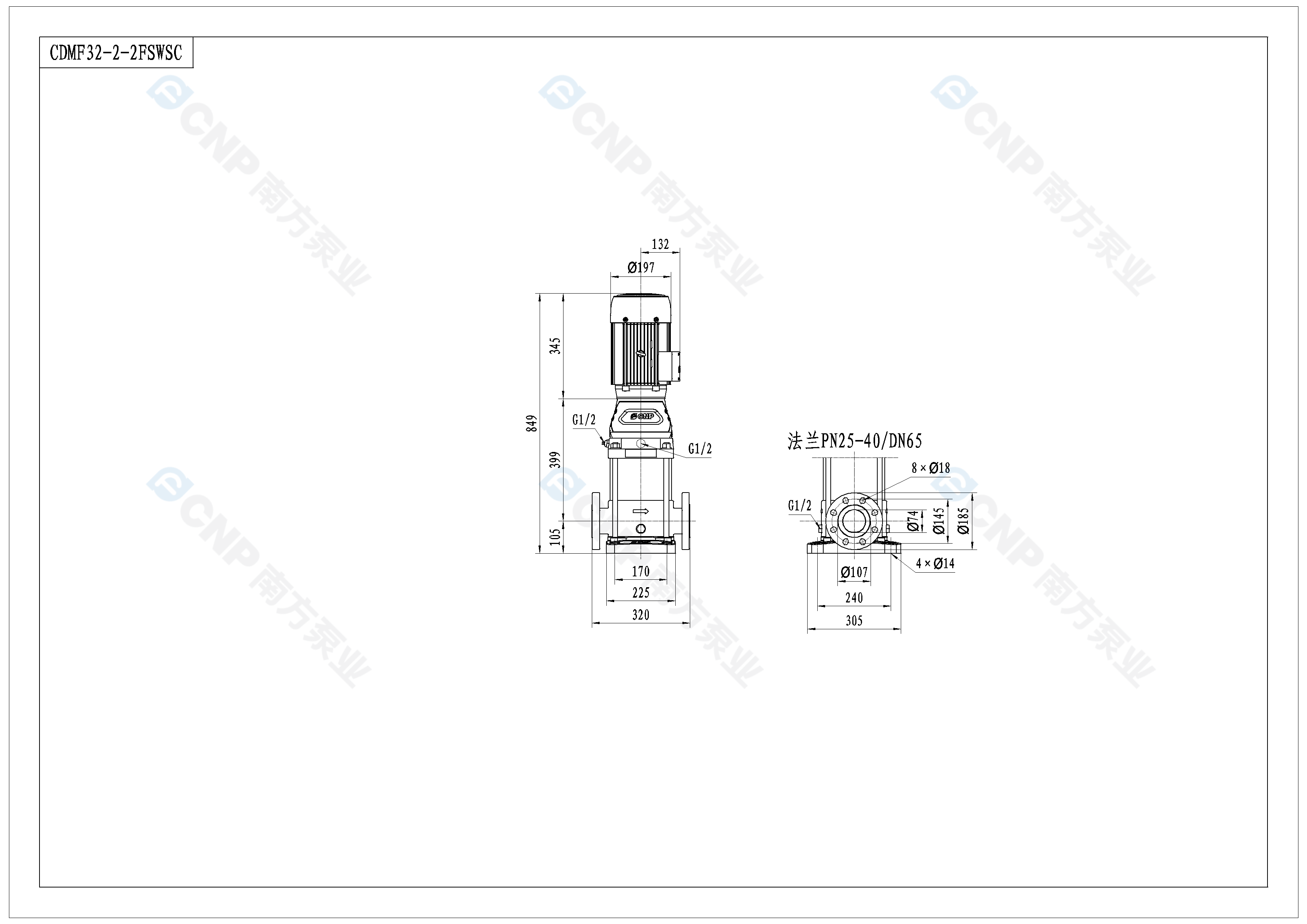 需要南方泵CDM32-2-2外形CAD文件 請加銷售人員微信索取