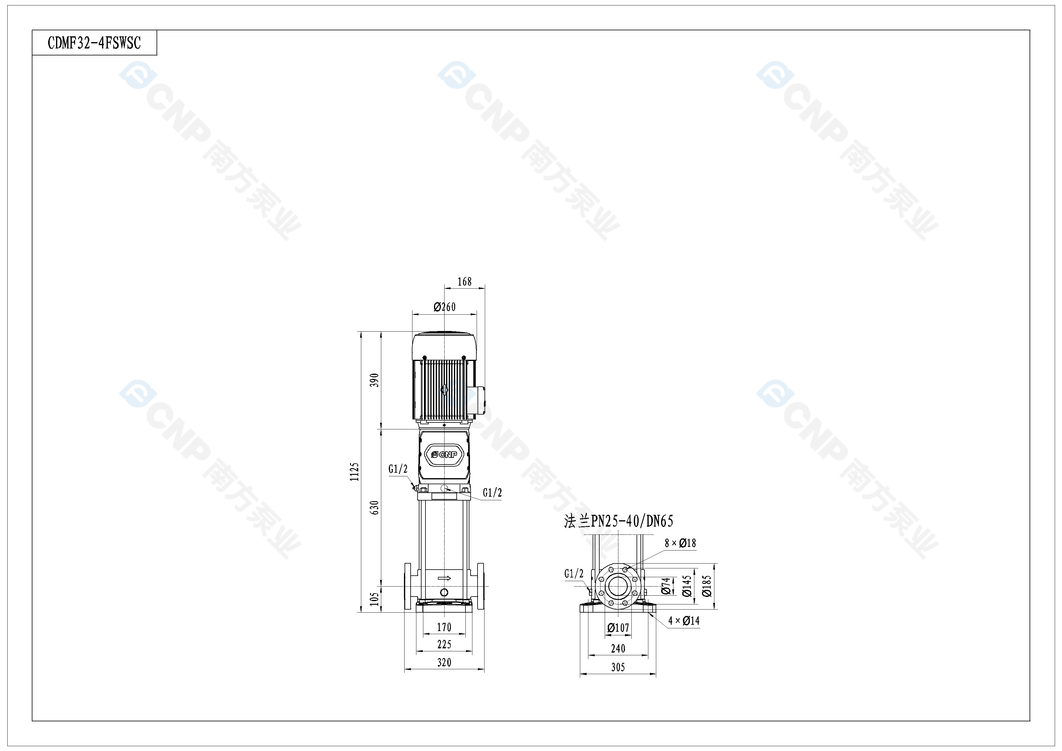 需要南方泵CDM32-4外形CAD文件 請加銷售人員微信索取
