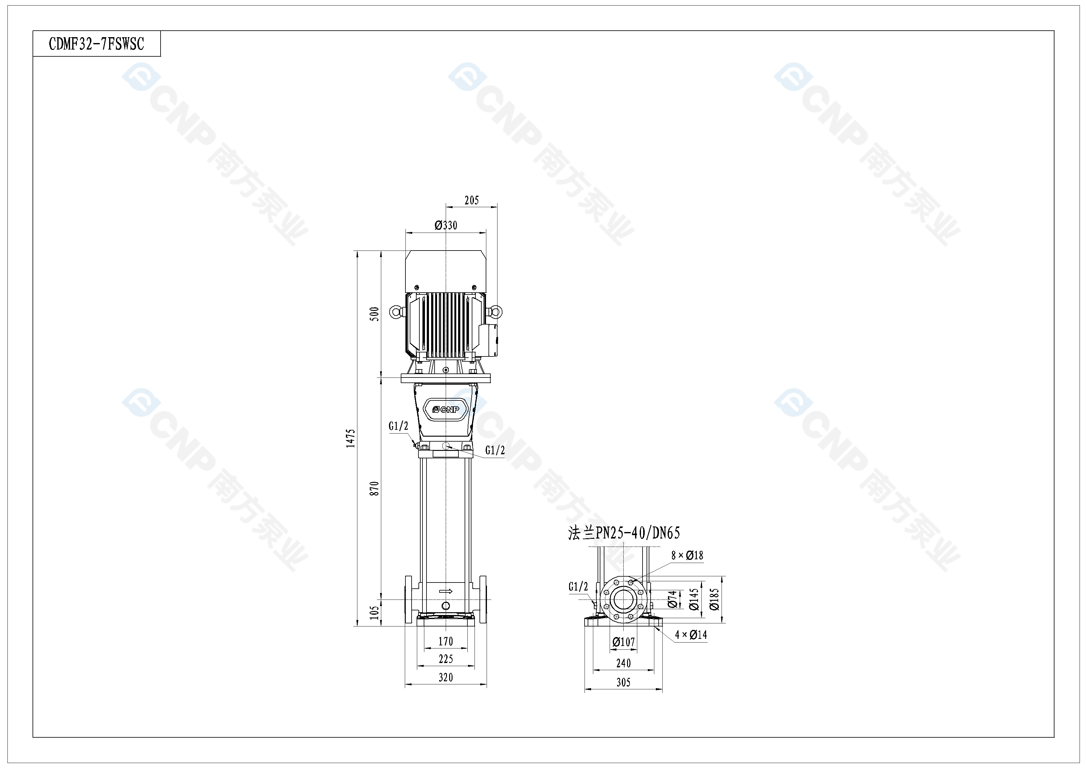 需要南方泵CDM32-7外形CAD文件 請加銷售人員微信索取