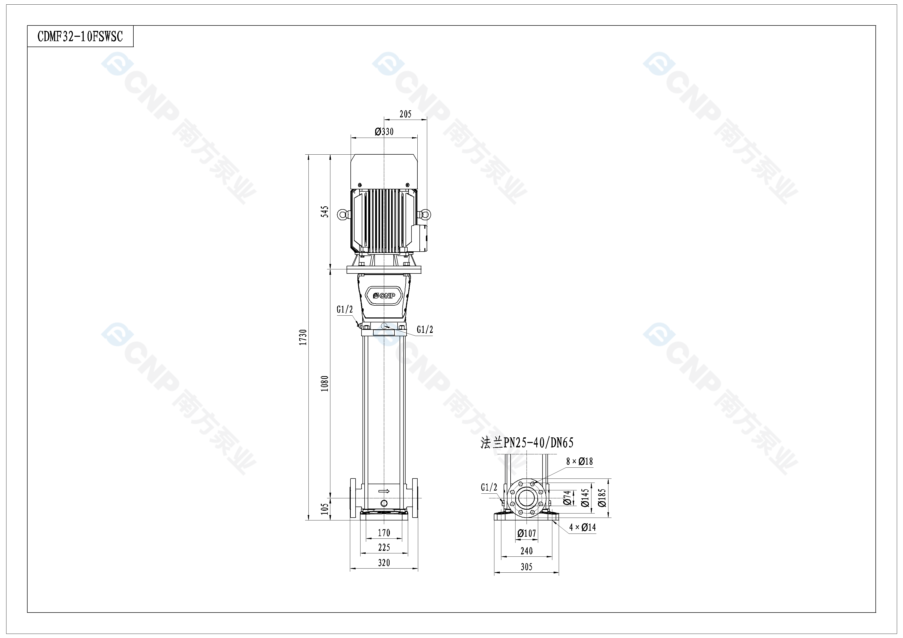 需要南方泵CDM32-10外形CAD文件 請加銷售人員微信索取