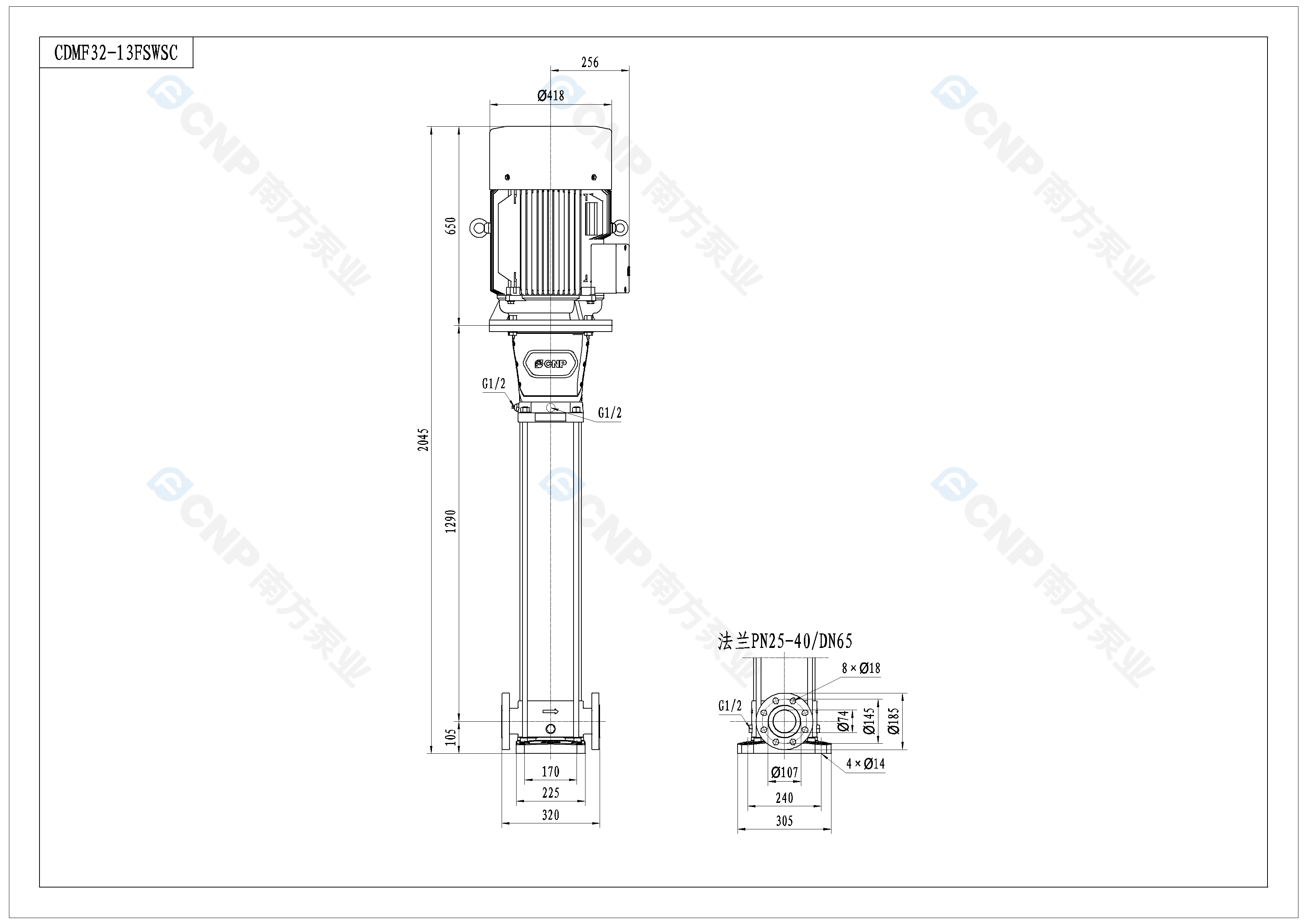 需要南方泵CDM32-13外形CAD文件 請加銷售人員微信索取