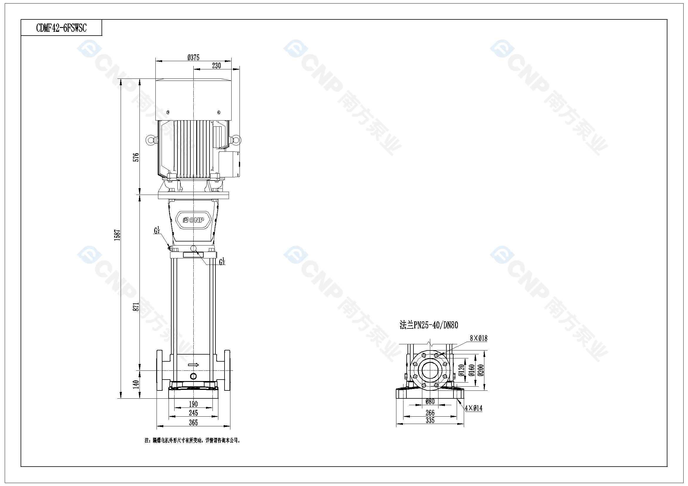 需要南方泵CDM42-6外形CAD文件 請加銷售人員微信索取