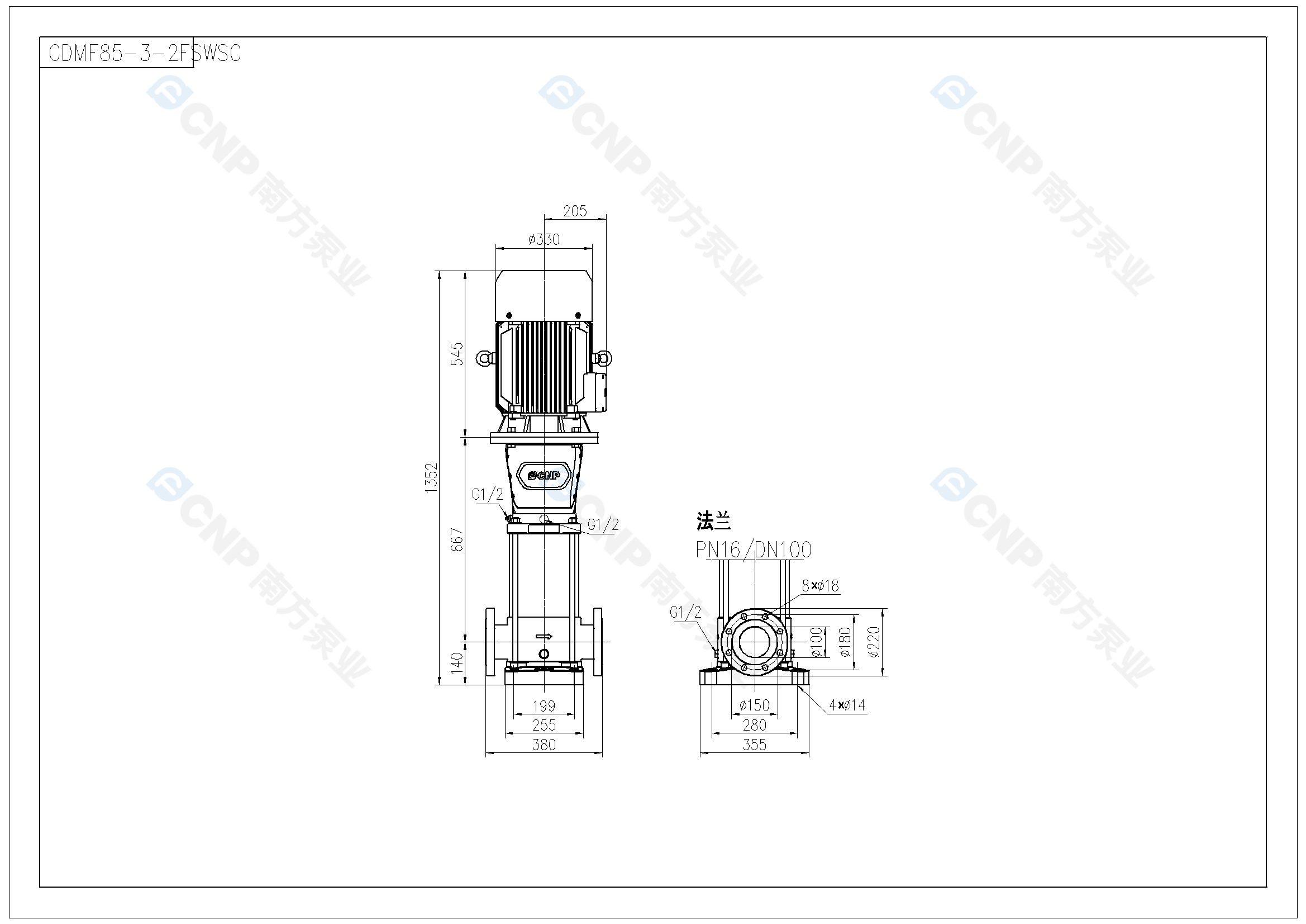 需要南方泵CDM85-3-2外形CAD文件 請(qǐng)加銷售人員微信索取