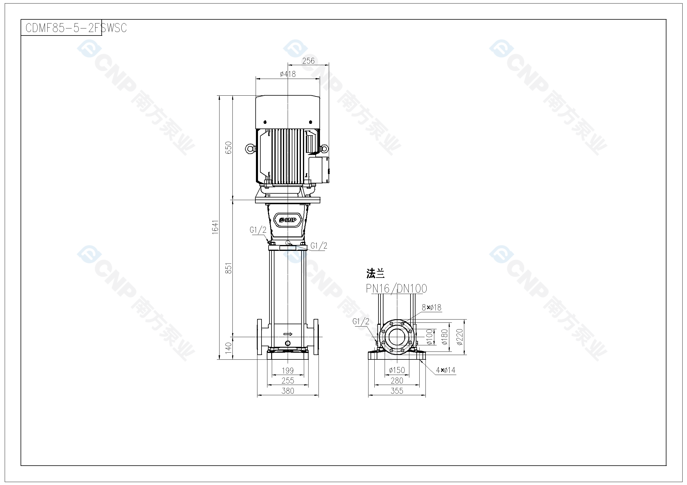 需要南方泵CDM85-5-2外形CAD文件 請加銷售人員微信索取