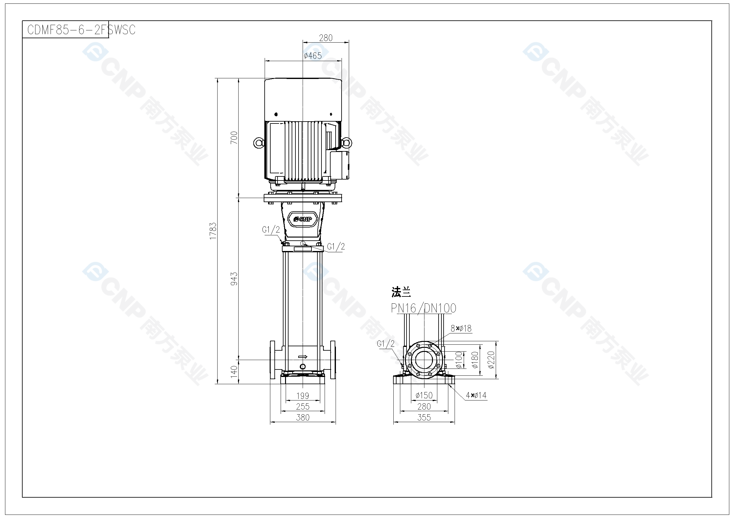 需要南方泵CDM85-6-2外形CAD文件 請加銷售人員微信索取