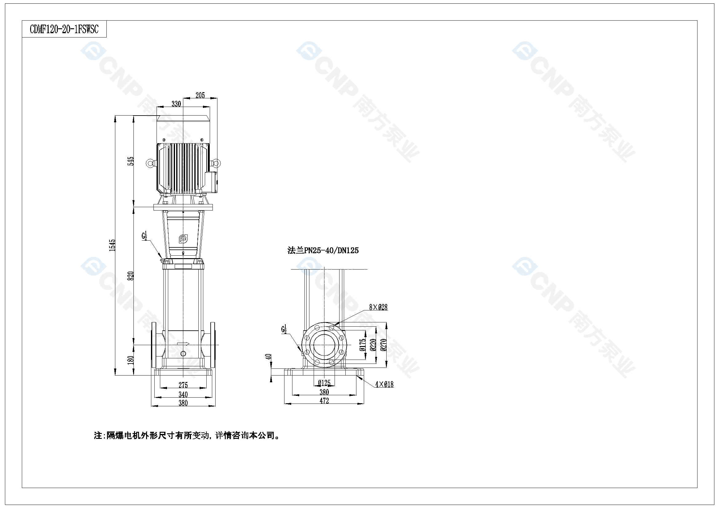 需要南方泵CDM120-2-1外形CAD文件 請加銷售人員微信索取