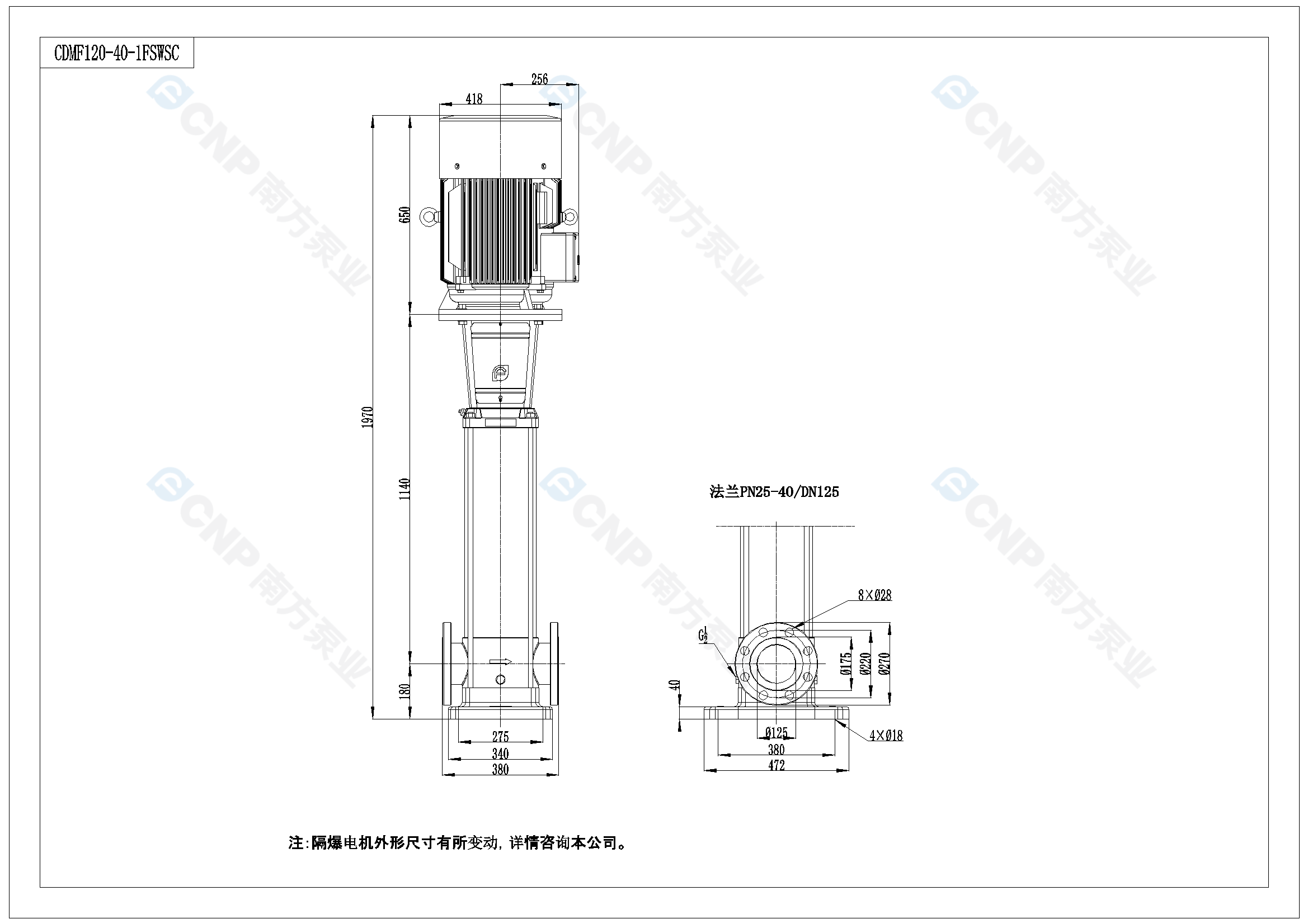 需要南方泵CDM120-4-1外形CAD文件 請加銷售人員微信索取