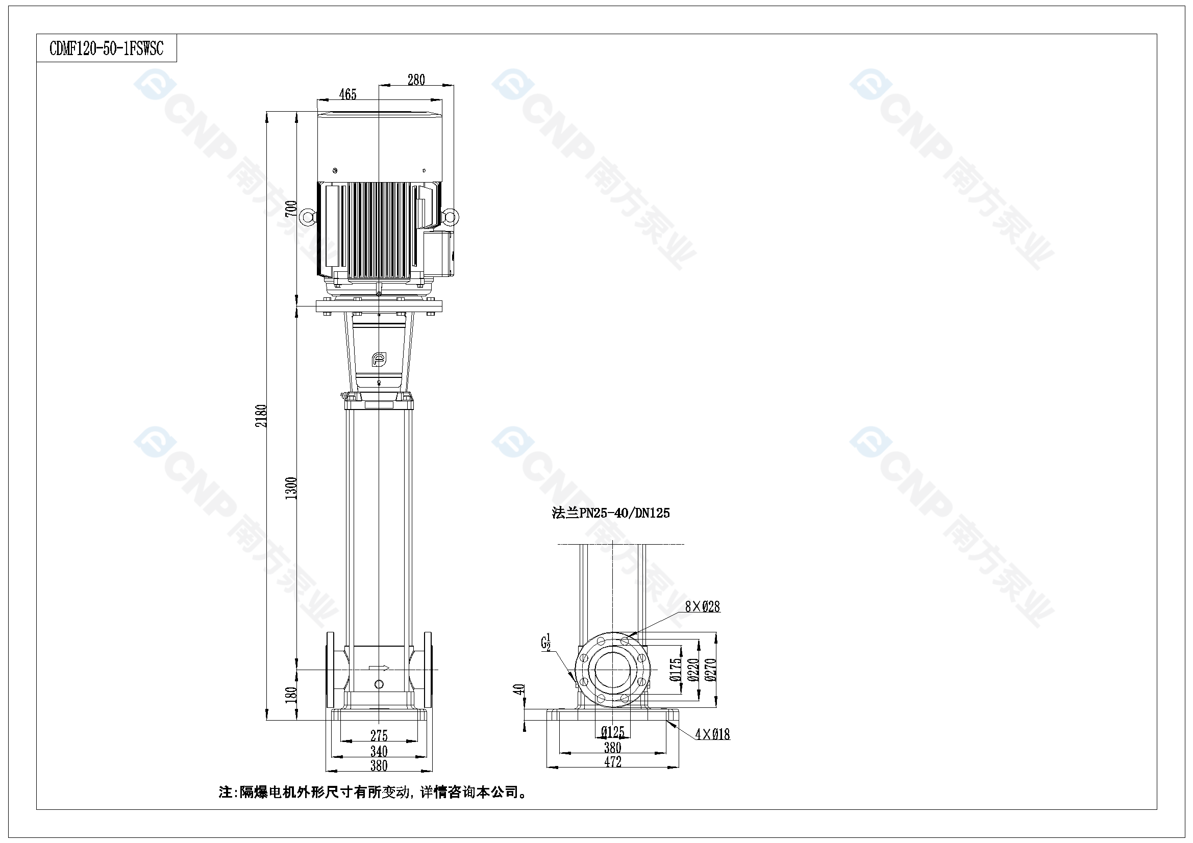 需要南方泵CDM120-5-1外形CAD文件 請加銷售人員微信索取