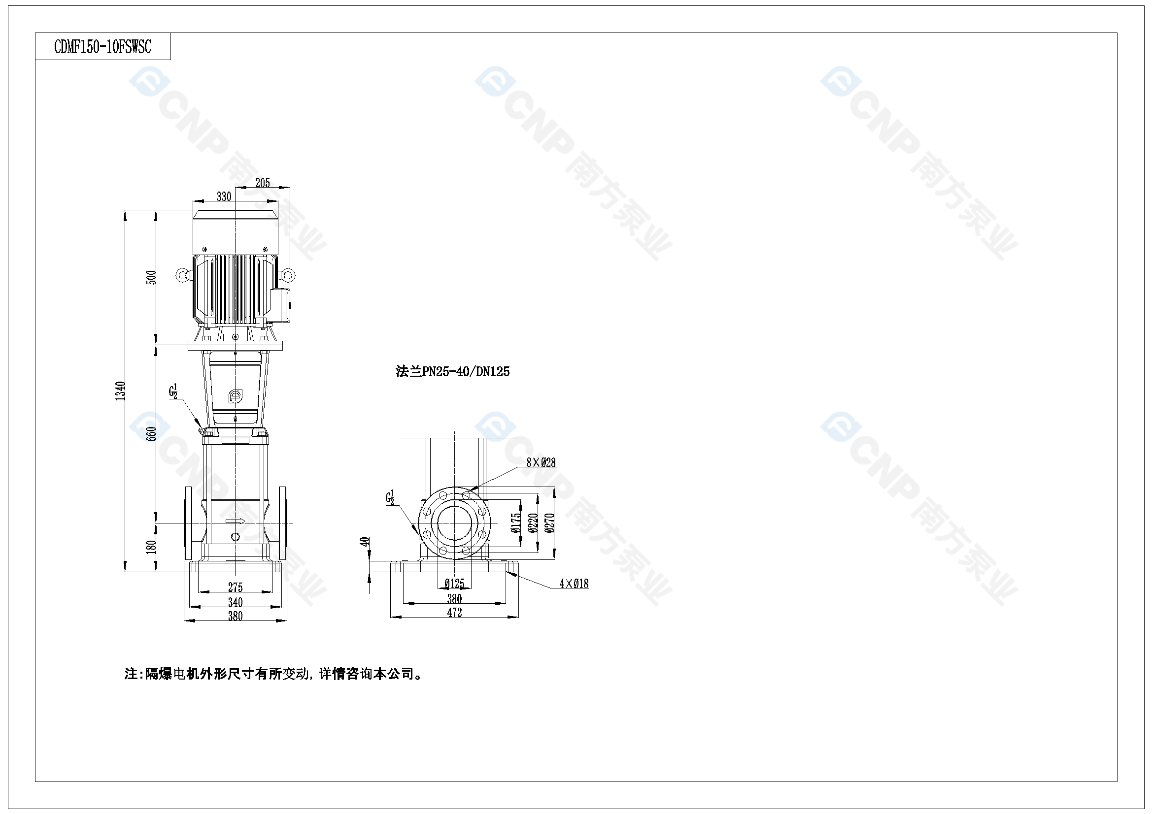 需要南方泵CDM150-1外形CAD文件 請加銷售人員微信索取