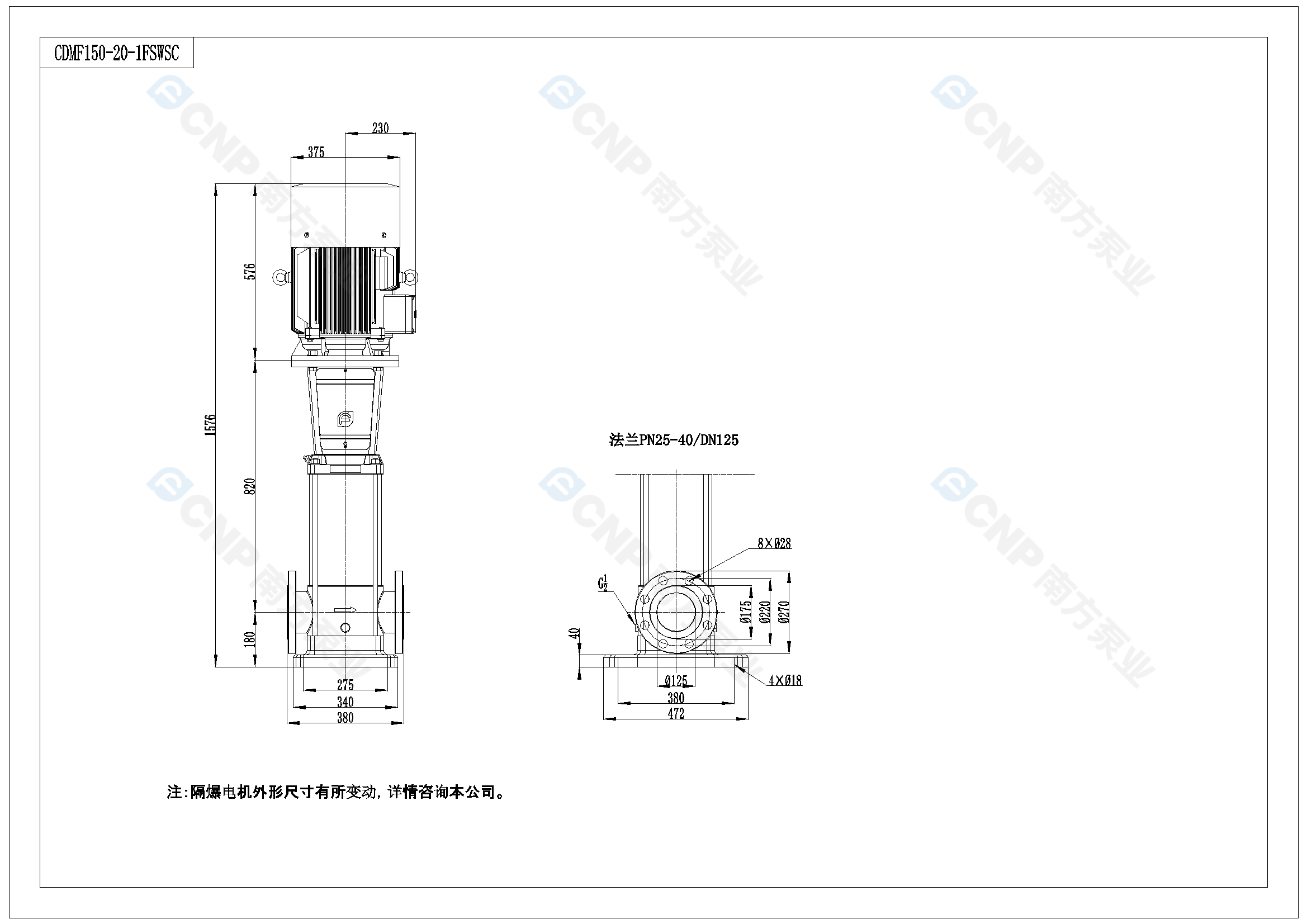 需要南方泵CDM150-2-1外形CAD文件 請加銷售人員微信索取