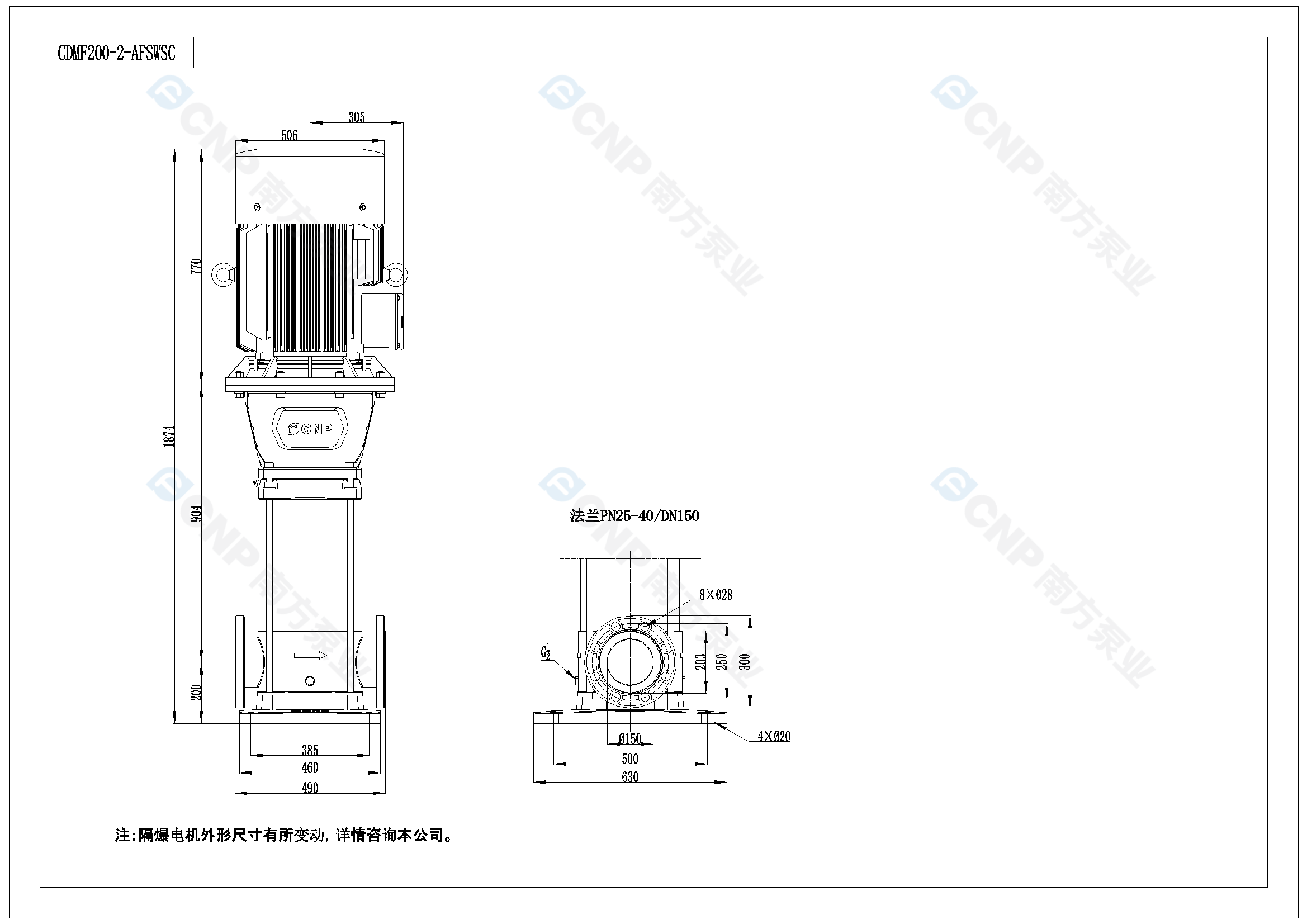 需要南方泵CDM200-2-A外形CAD文件 請加銷售人員微信索取