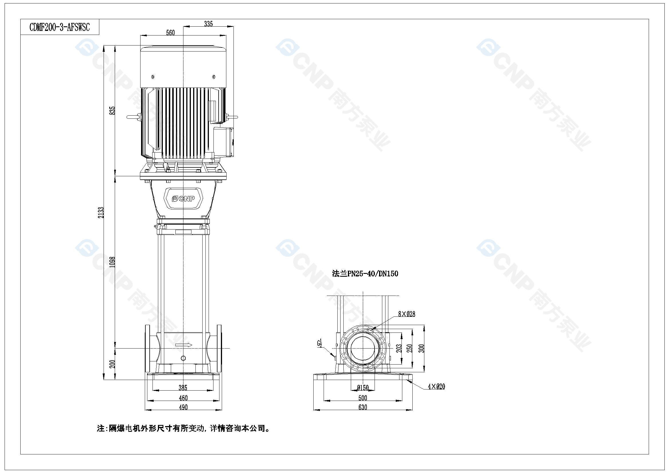 需要南方泵CDM200-3-A外形CAD文件 請加銷售人員微信索取
