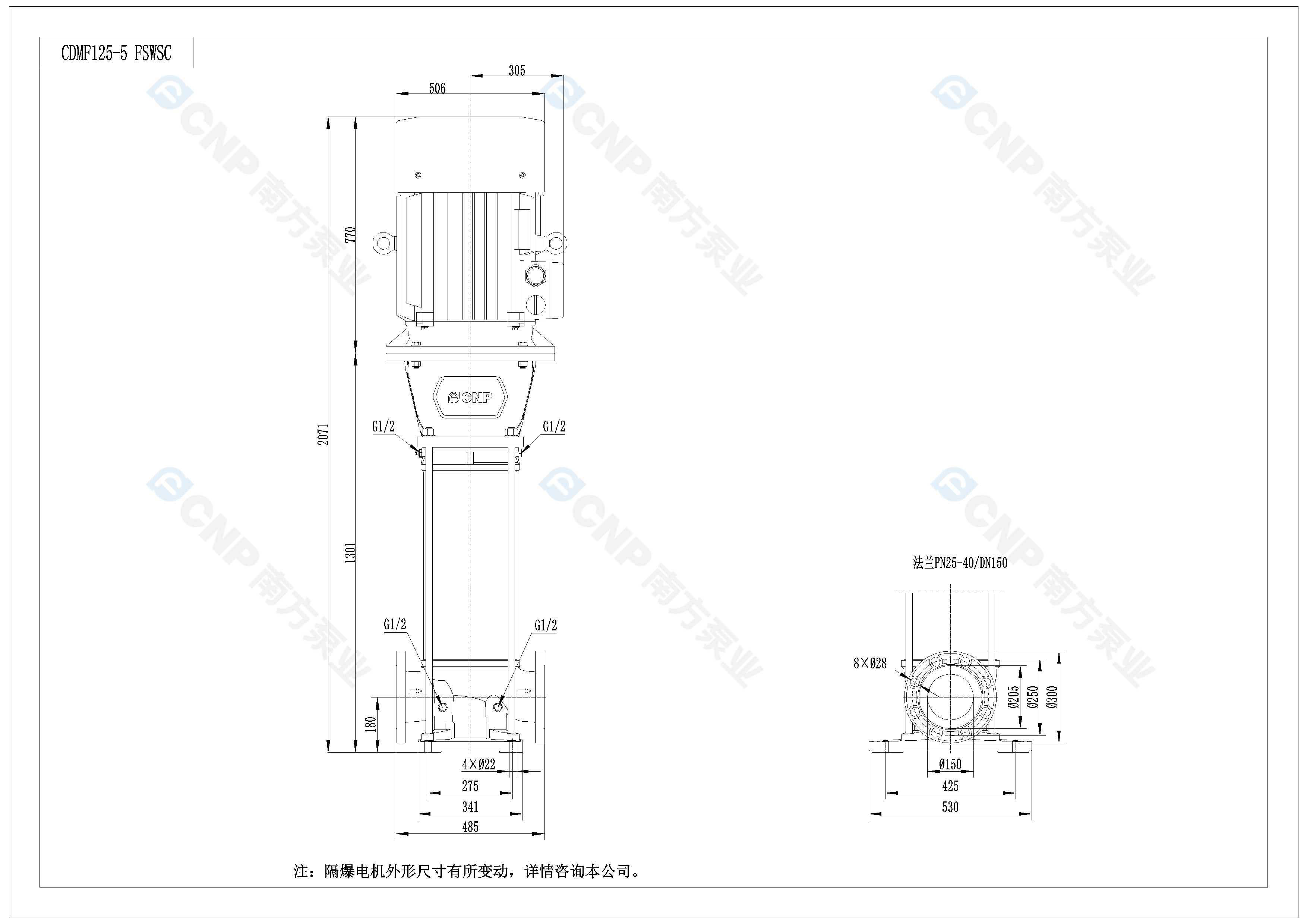 需要南方泵CDM125-5外形CAD文件 請加銷售人員微信索取