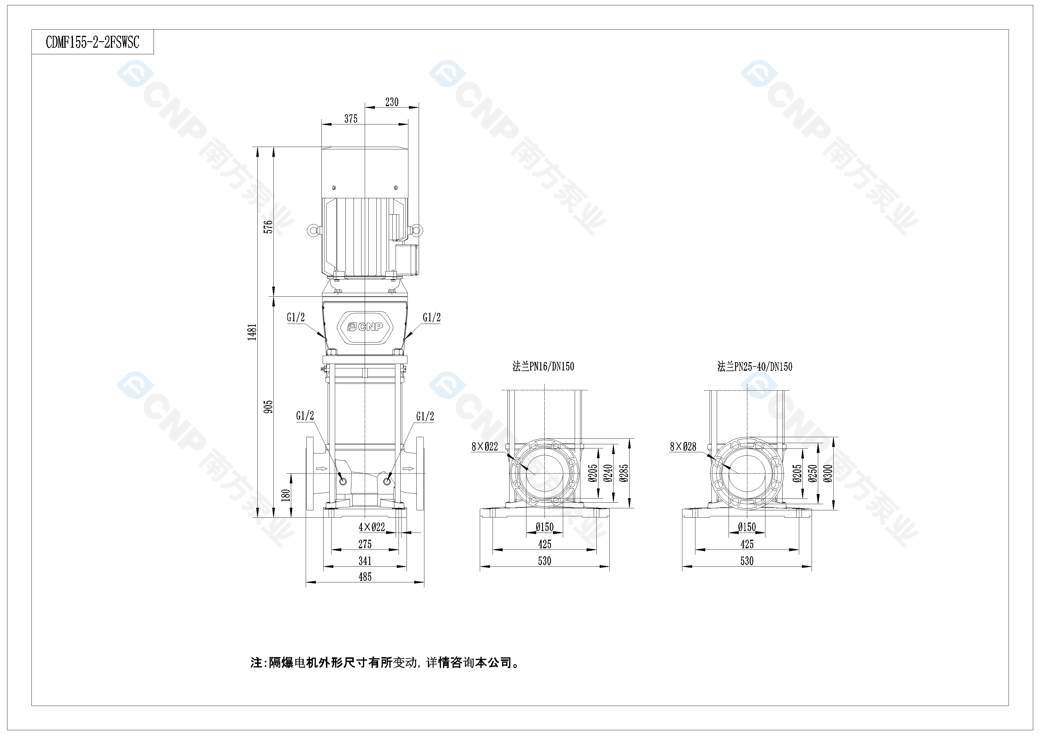 需要南方泵CDM155-2-2外形CAD文件 請加銷售人員微信索取