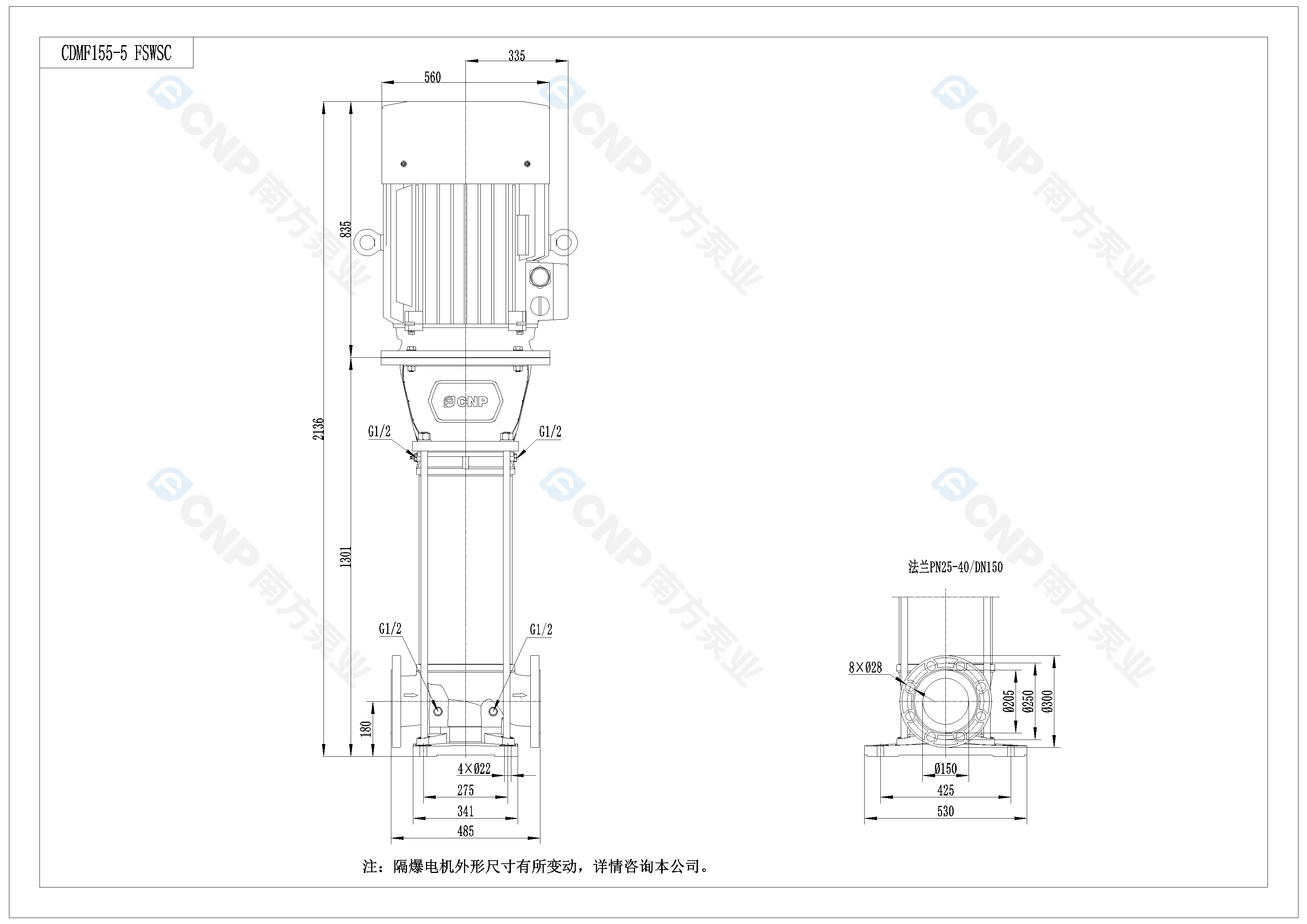 需要南方泵CDM155-5外形CAD文件 請加銷售人員微信索取