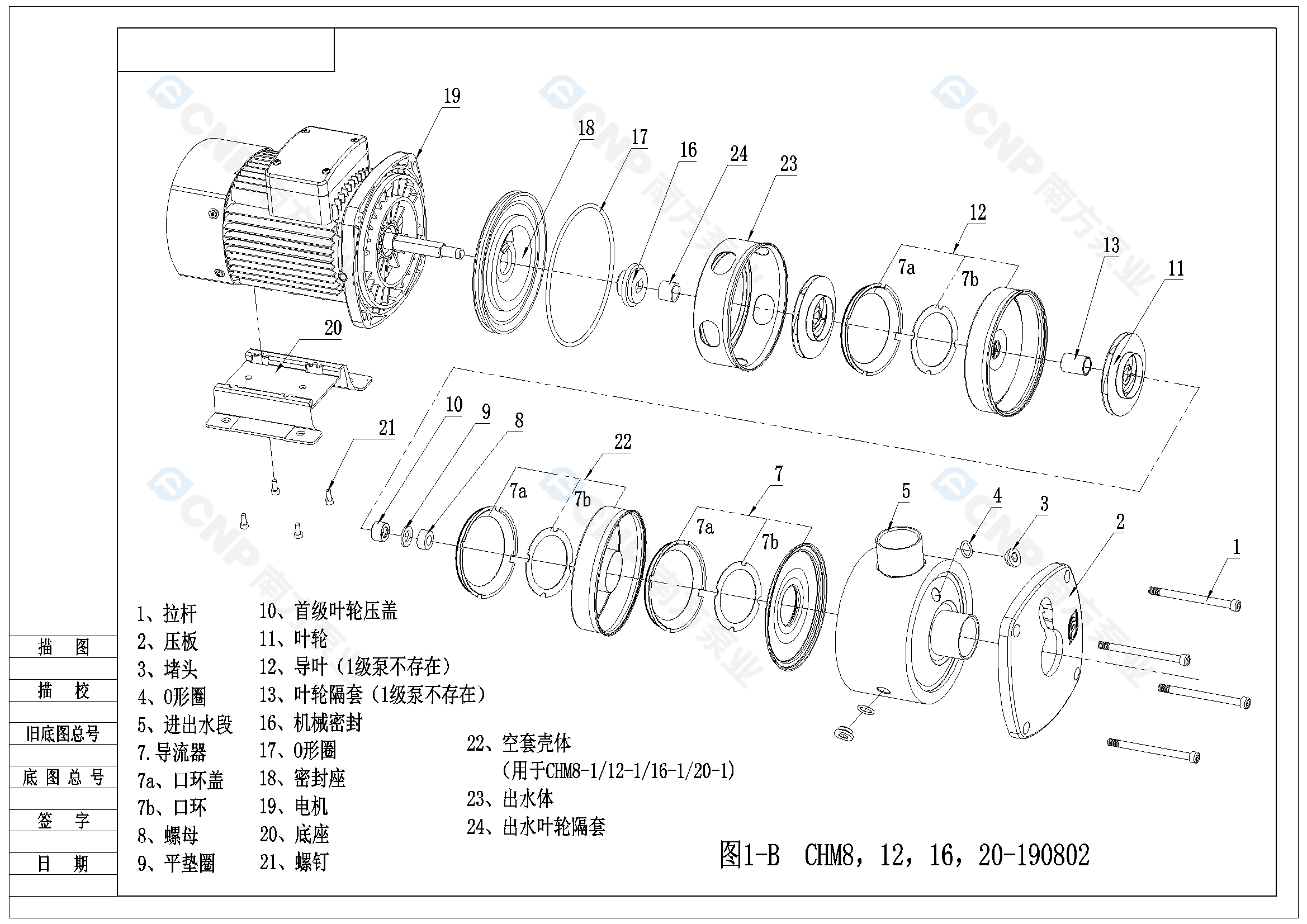 需要南方泵CHM8-5爆炸圖CAD文件 請加銷售人員微信索取