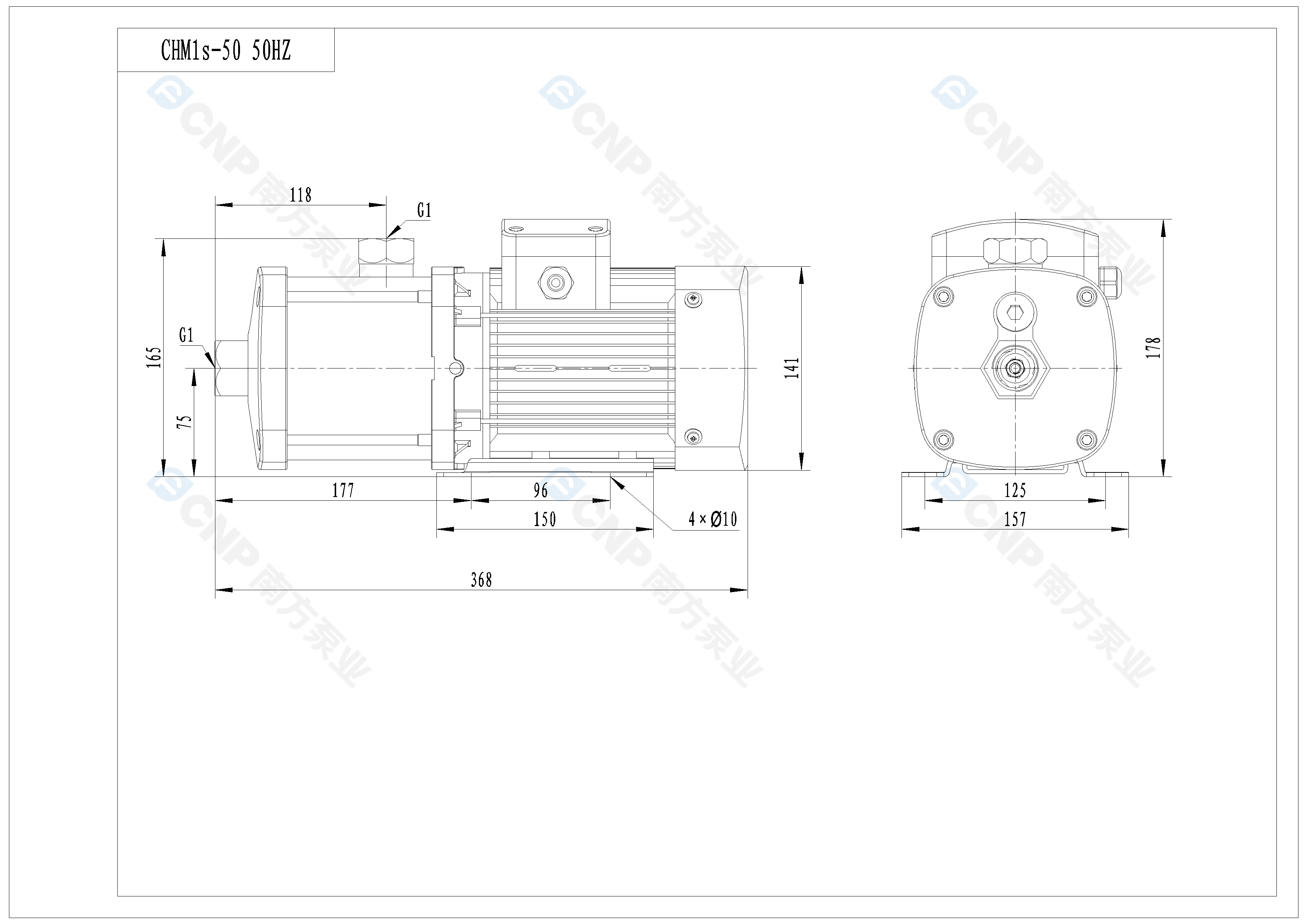 需要南方泵CHM1-50外形CAD文件 請加銷售人員微信索取