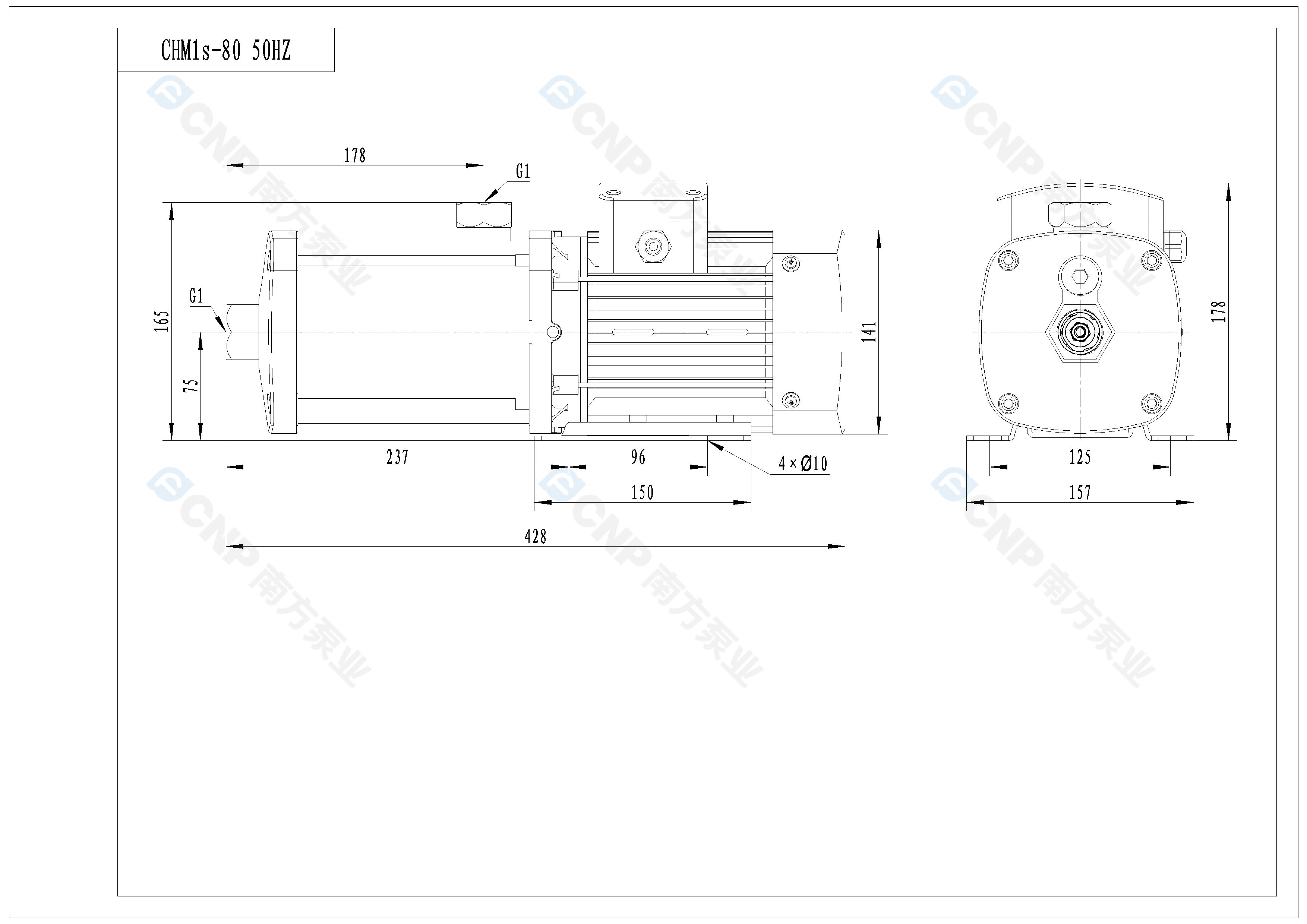 需要南方泵CHM1-80外形CAD文件 請加銷售人員微信索取