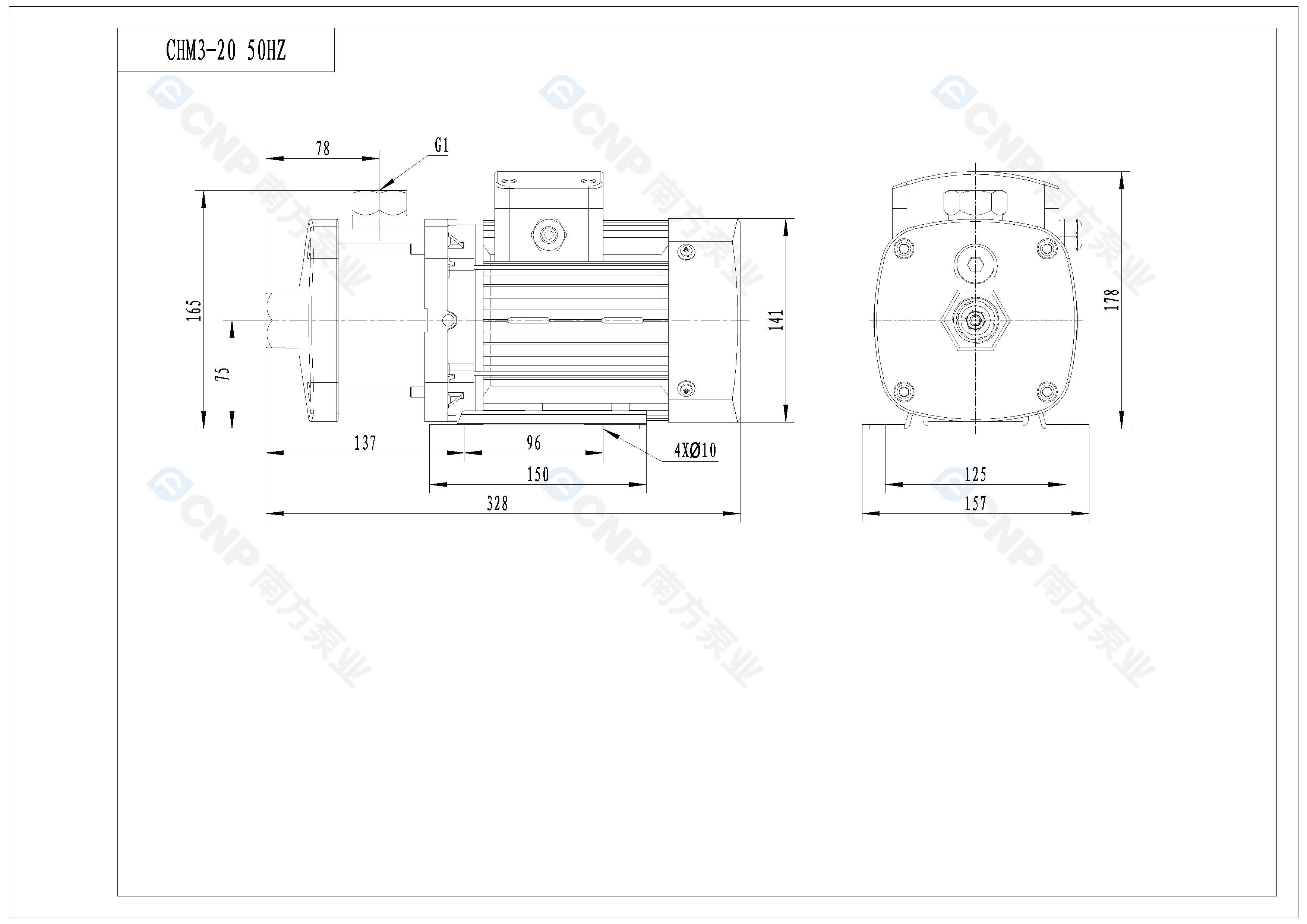 需要南方泵CHM3-20外形CAD文件 請加銷售人員微信索取