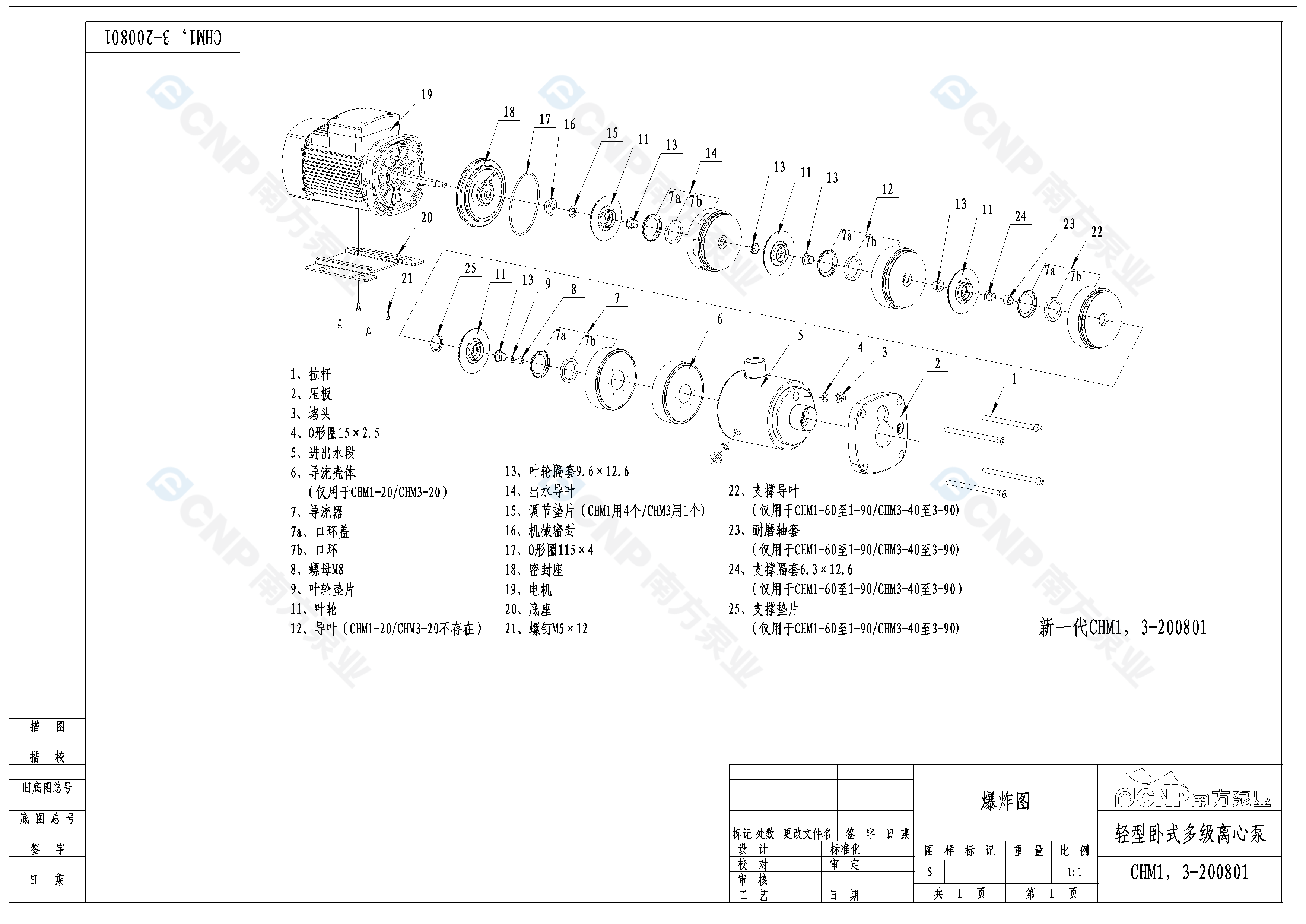 需要南方泵CHM3-80爆炸圖CAD文件 請加銷售人員微信索取