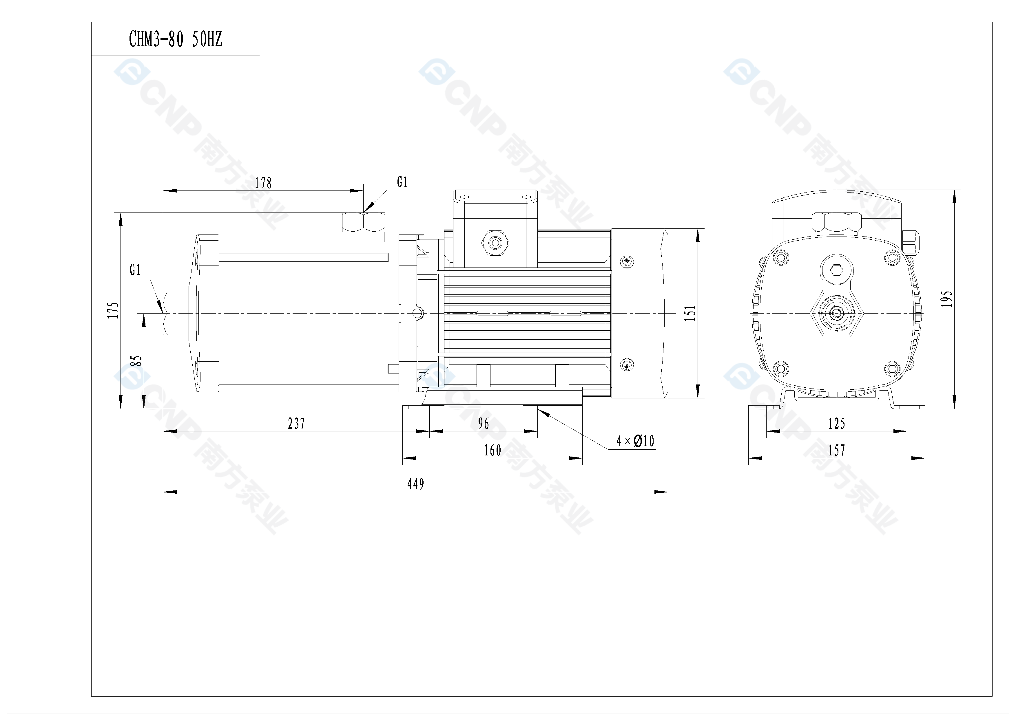 需要南方泵CHM3-80外形CAD文件 請加銷售人員微信索取