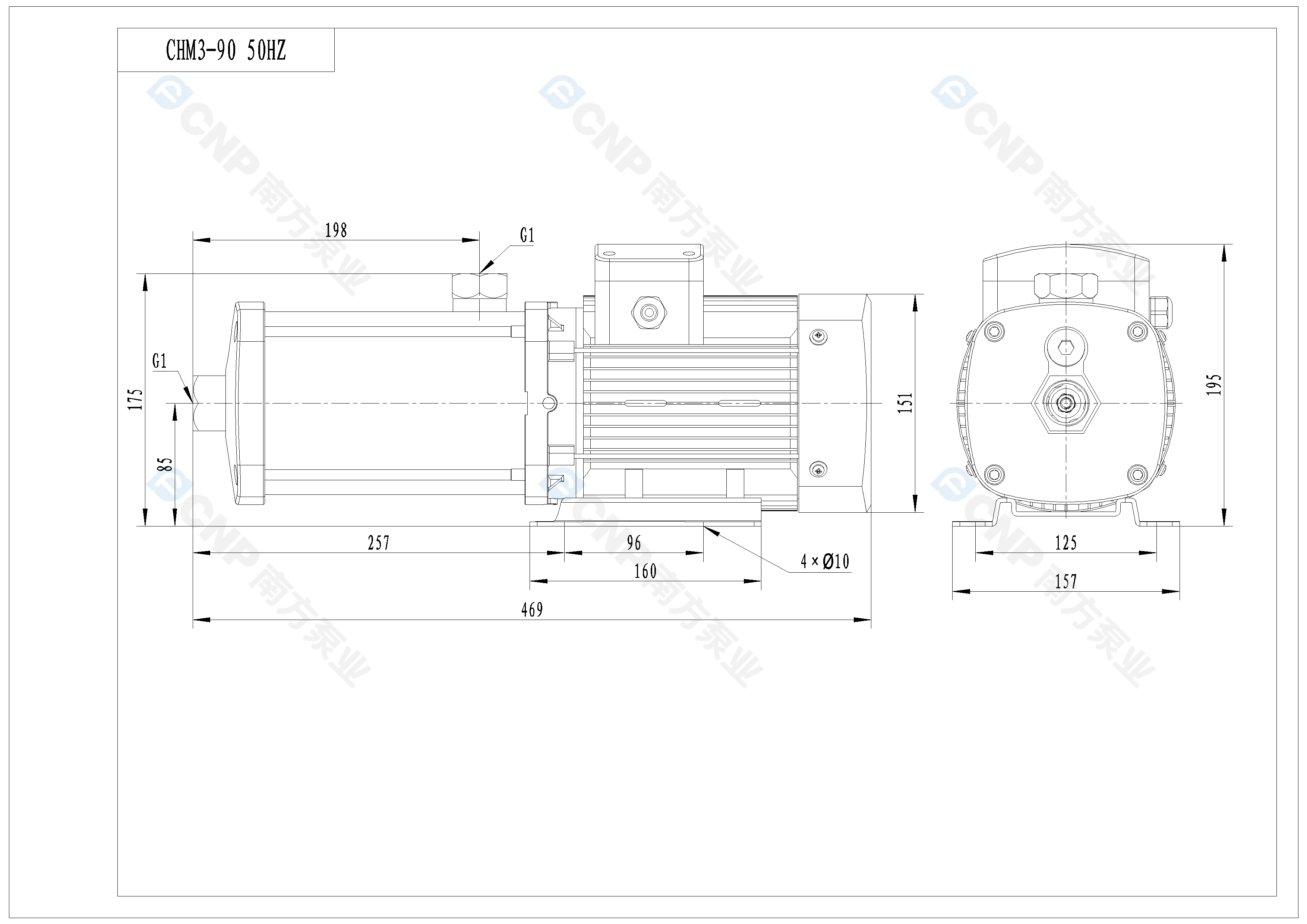 需要南方泵CHM3-90外形CAD文件 請加銷售人員微信索取