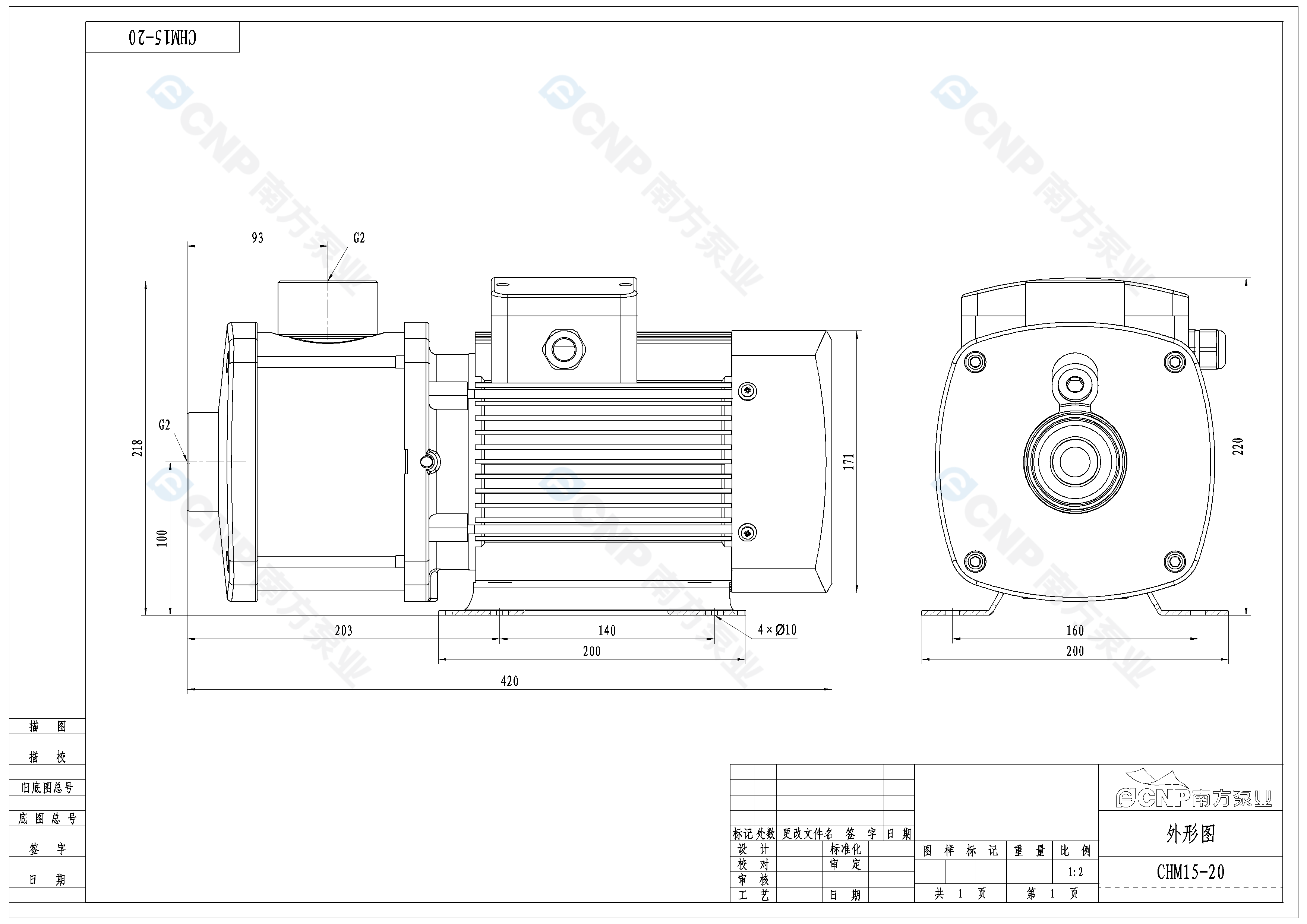 需要南方泵CHM15-20外形CAD文件 請加銷售人員微信索取