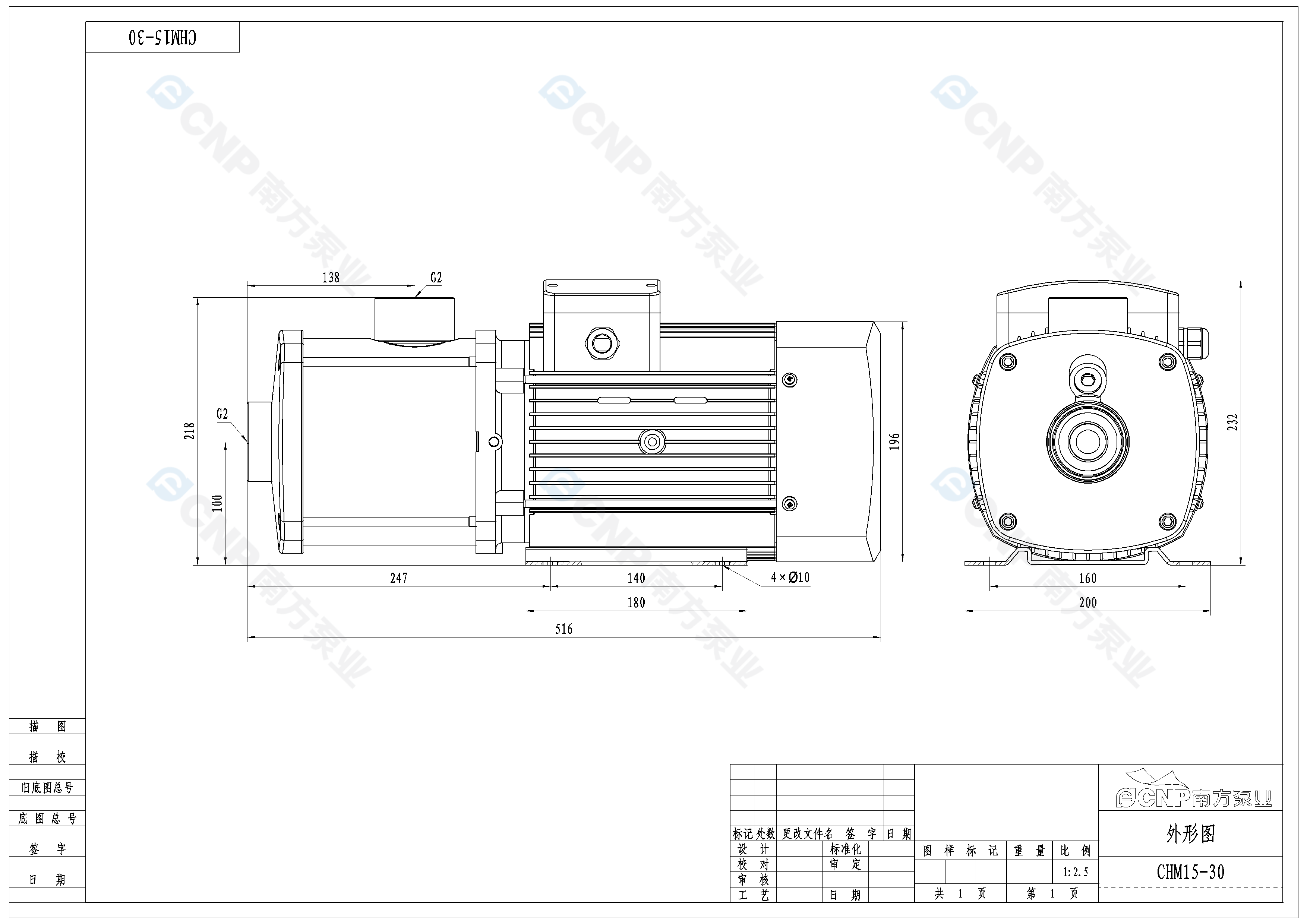 需要南方泵CHM15-30外形CAD文件 請加銷售人員微信索取