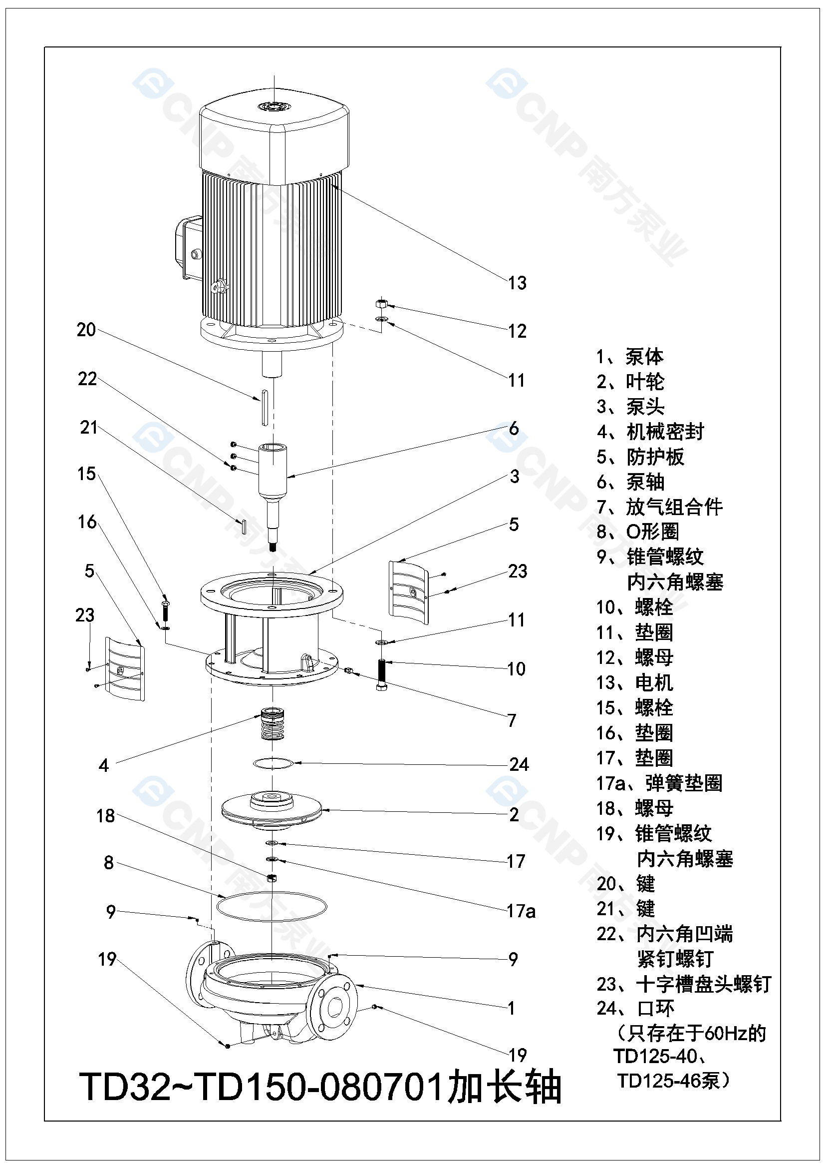 需要南方泵TD32-21G/2爆炸圖CAD文件 請加銷售人員微信索取