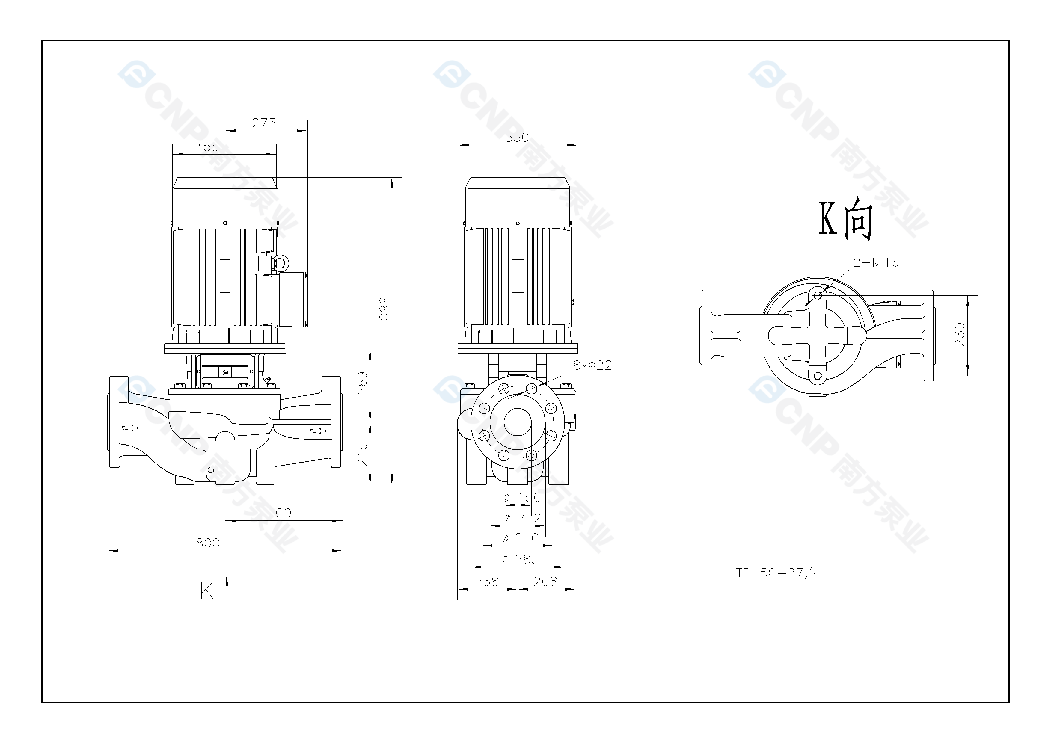 需要南方泵TD150-27/4外形CAD文件 請加銷售人員微信索取