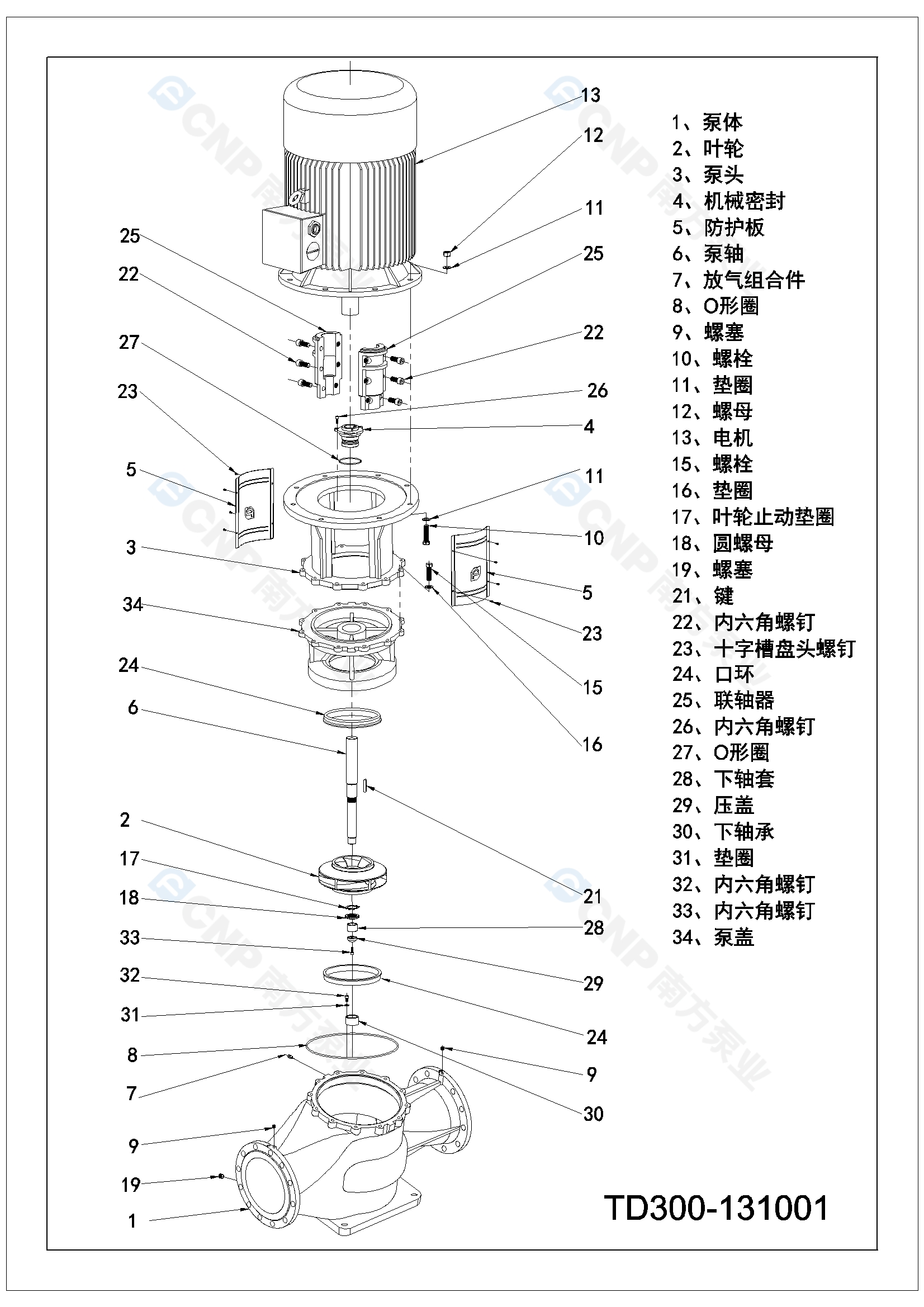 需要南方泵TD300-20/4爆炸圖CAD文件 請(qǐng)加銷(xiāo)售人員微信索取